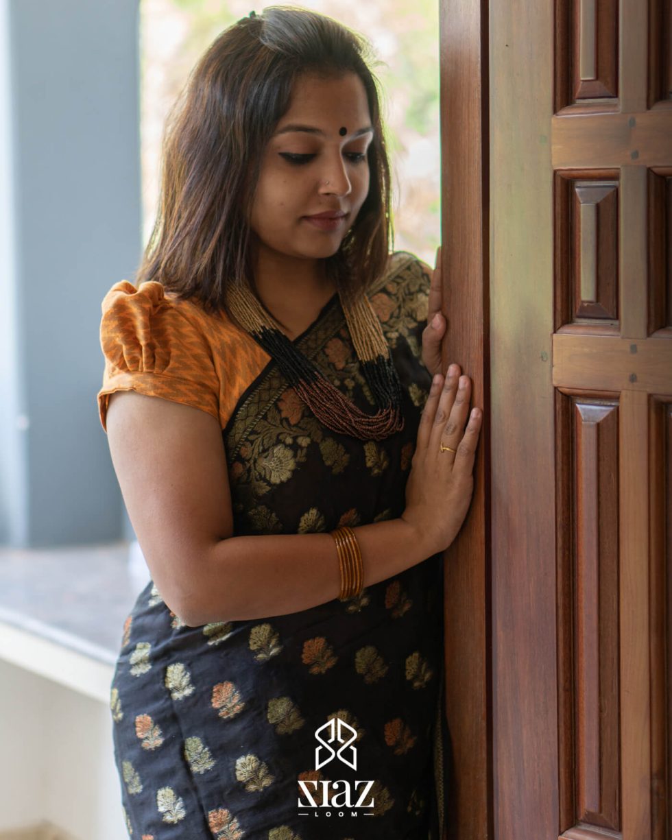 BNPC2201004 Siazloom Chiffon Handwoven Black Banarasi saree