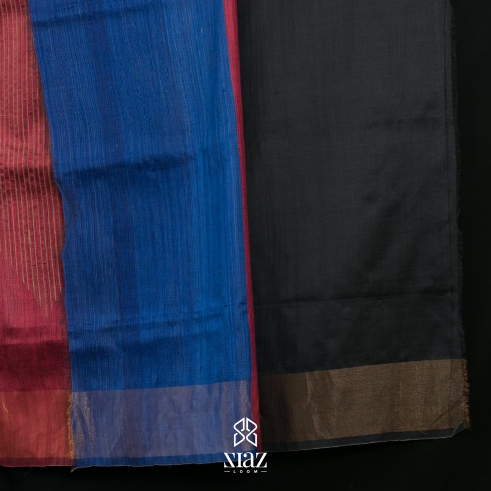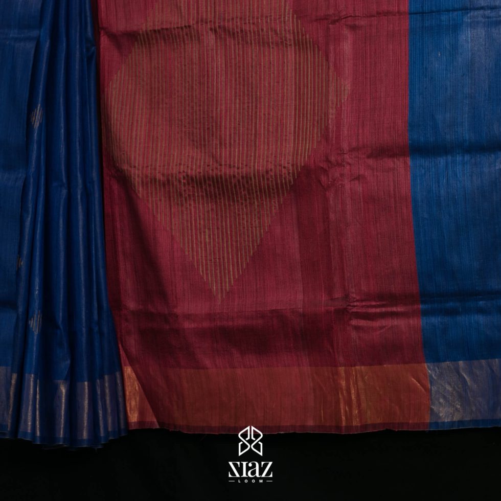 SIAZ LOOM – Handwoven Tussar Dupion Silk Sarees – Royal Blue – Pink
