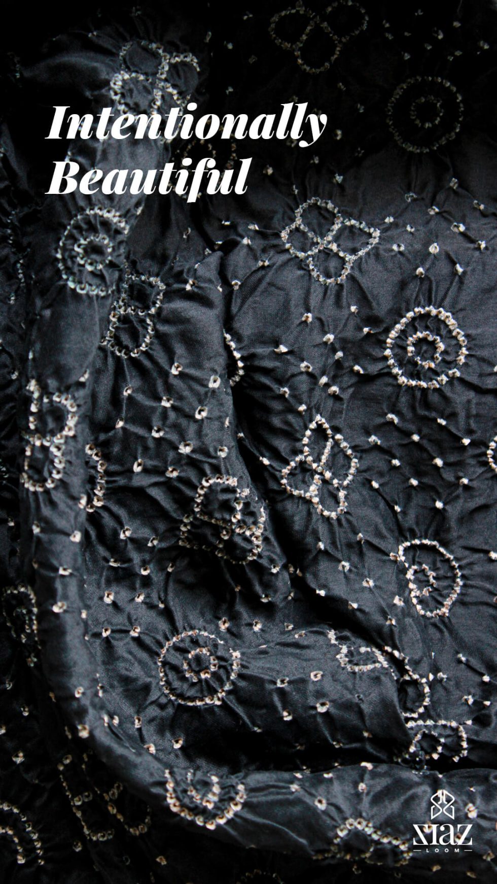 SIAZLOOM Black colour Chanderi Silk Saree with Bandhej work from Rajasthan