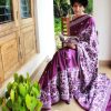 • This beautiful piece was handwoven on handlooms using mulberry silk warp and weft by the skilled artisans.